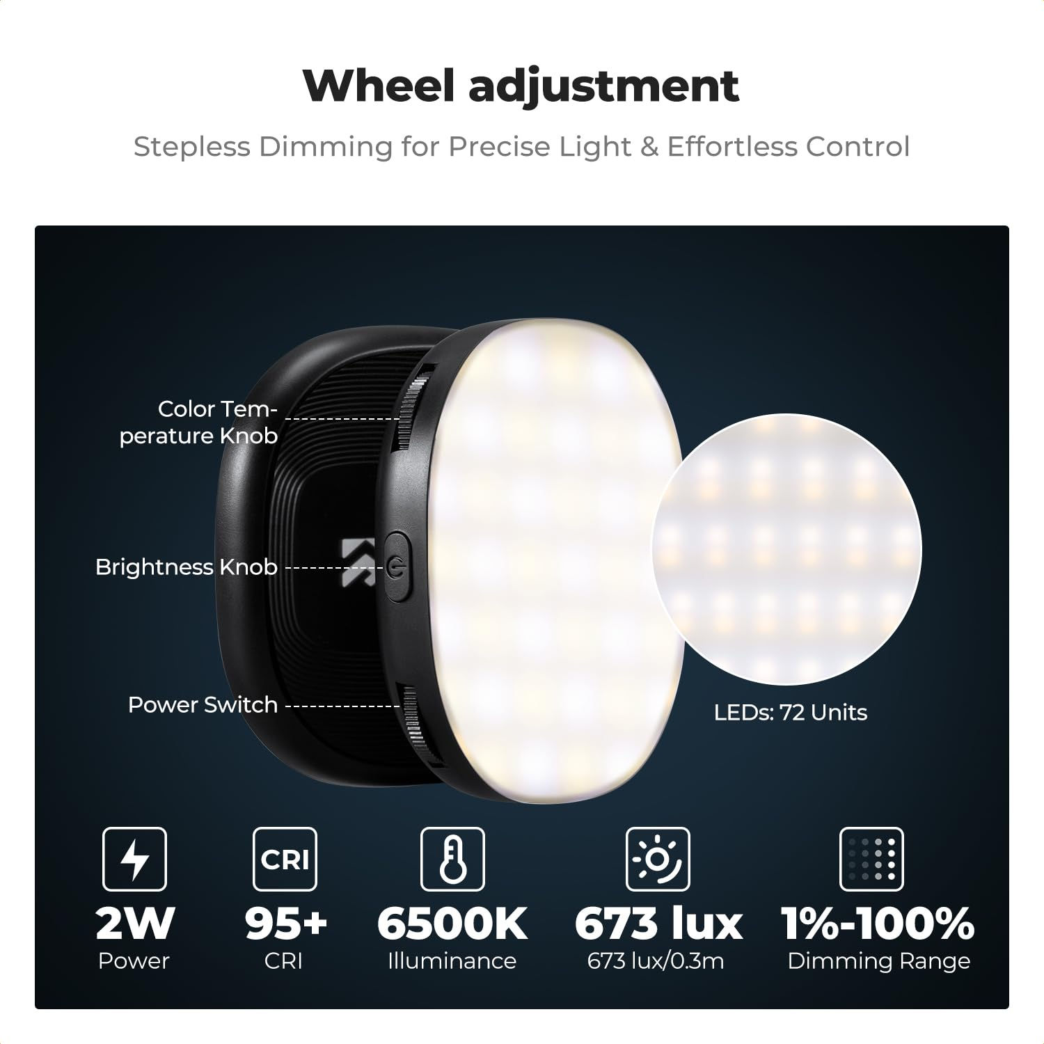 Designed for portability, the light delivers soft, even illumination despite its small size.